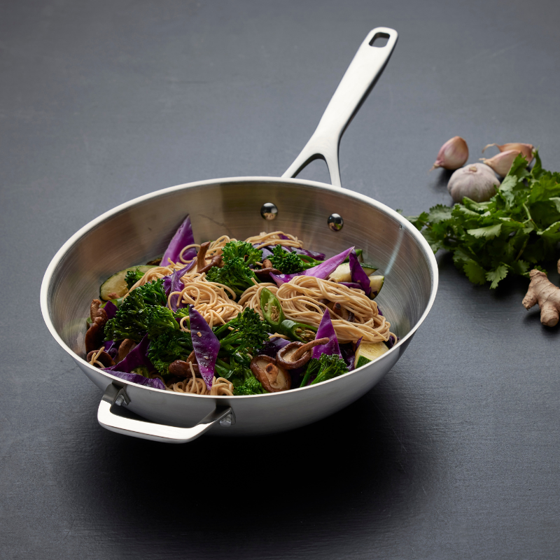 Morsø 30 cm wok i 79NORD-serien. Wokken har satinfinish udvendigt og indvendigt og en bundtykkelse på 6,1 mm. Håndtaget er af stål, og med fuld stålinduktionsbund kan wokken anvendes på alle varmekilder samt ovn op til 200 grader.