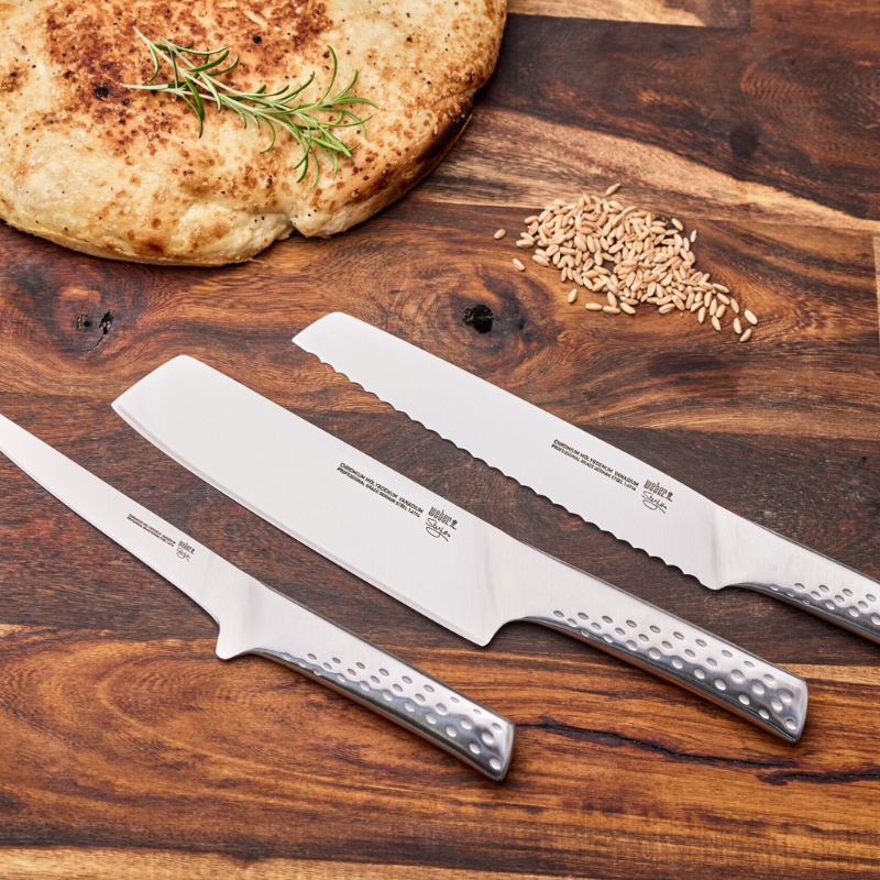 Rene og enkle linjer i et moderne design med ergonomiske greb - det er målet med den klassiske Weber style knivserie. Serien er skabt for at kunne tilbyde både hjemmets køkkenchef og professionelle kokke super funktionelle knive til brug ved grillen eller i køkkenet. Alle knive pakket ind i et toplækkert design.