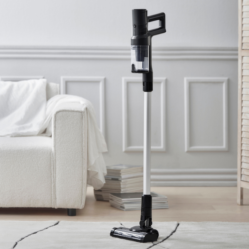 Ledningsfri støvsuger til nem rengøring i hele hjemmet. Den kraftfulde DC-motor med turbofunktion sikrer stærk sugeevne med op til 40 minutters driftstid på normal hastighed og 20 minutter på turbo. Det fleksible børstehoved med LED-lys gør det lettere at få øje på støv og snavs. Støvsugeren er udstyret med et HEPA-filter og en gennemsigtig 0,5 liters støvbeholder, der tømmes nemt. Det aftagelige batteri oplades på 5 timer, og vægmonteringen sikrer praktisk opbevaring. Adapter medfølger.