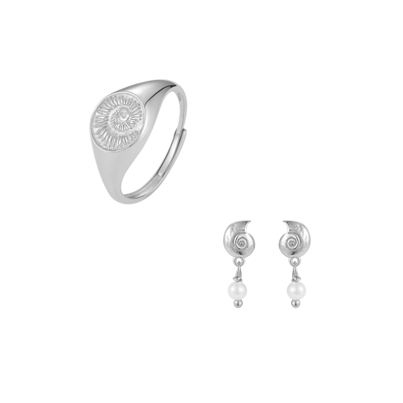 Shelly Ring er en moderne signetring med et detaljeret mønster, inspireret af fossile skaller og havets skjulte former. Det spiralformede relief i ringens centrum skaber et spændende spil mellem det matte og det blanke, og vækker associationer til strandfund og gamle tidevandsaflejringer.