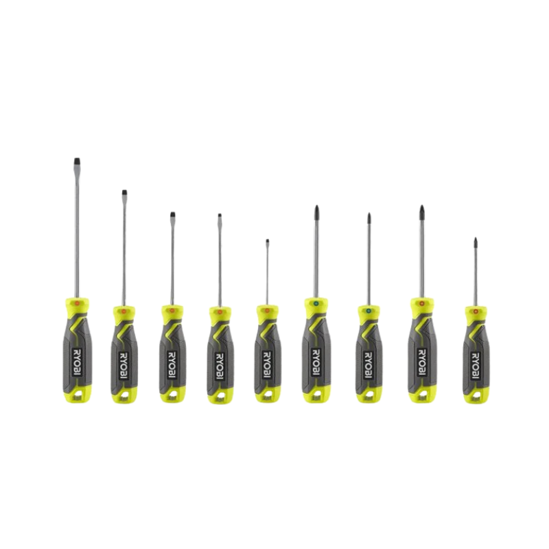 Skruetrækkersættet er en del af Ryobis håndværktøjsserie. - skridsikkert ergonomisk håndtag giver komfort og kontrol med et antirullende design, der forhindrer skruetrækkerne i at rulle væk, når de placeres på flade overflader