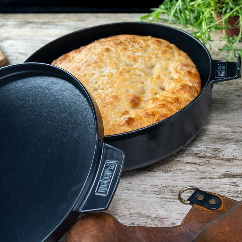 Denne støbejernsgryde kan både bruges som gryde og stegepande. Låg og bund fungerer uafhængigt af hinanden og giver maksimal fleksibilitet. Perfekt til simreretter, bagning og alt derimellem.