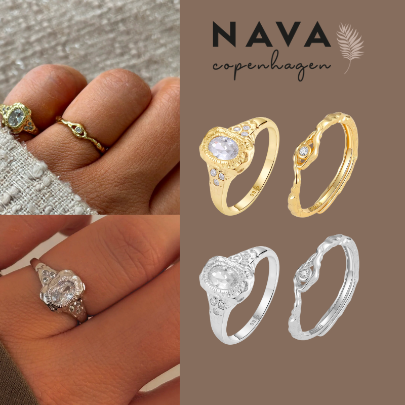 Atum ringen er et smykke med en stærk tilstedeværelse. Det store, klare zirkon i midten er omkranset af detaljerede teksturer, der leder tankerne hen på solens stråler, mens de mindre zirkoner på siden tilføjer et subtilt spil af lys. Ringen har en organisk og eksklusiv form, der gør den til en iøjnefaldende detalje til ethvert outfit.