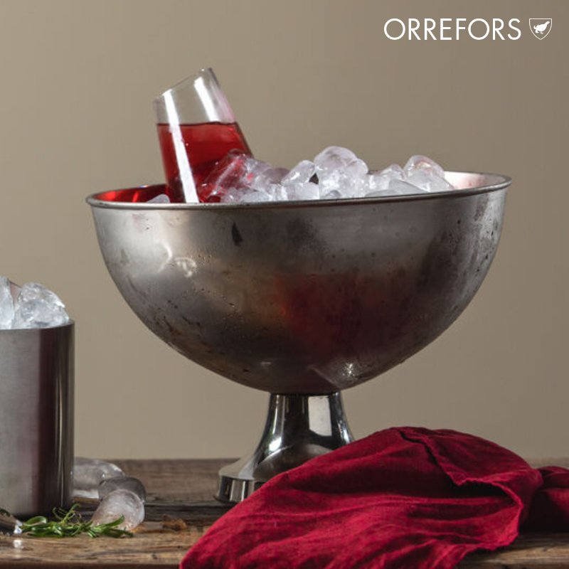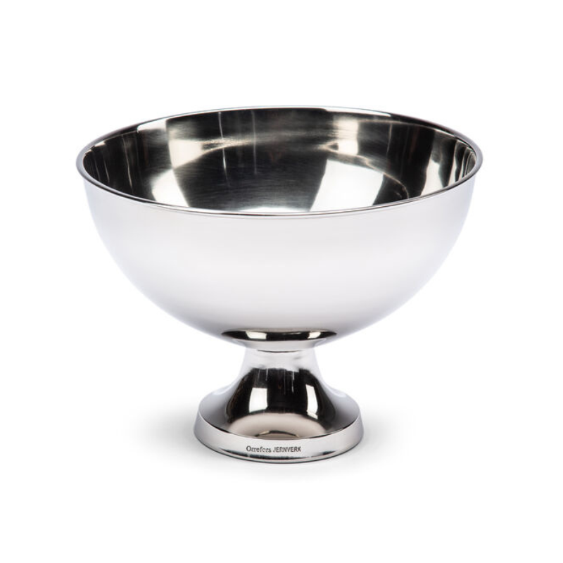 Flaskekøler fra Orrefors Jernverk i mellemstørrelse med plads til 2-3 flasker. Fungerer lige så godt til servering af diverse sommer-punch i. Fremstillet i 100% aluminium med stabil fod.