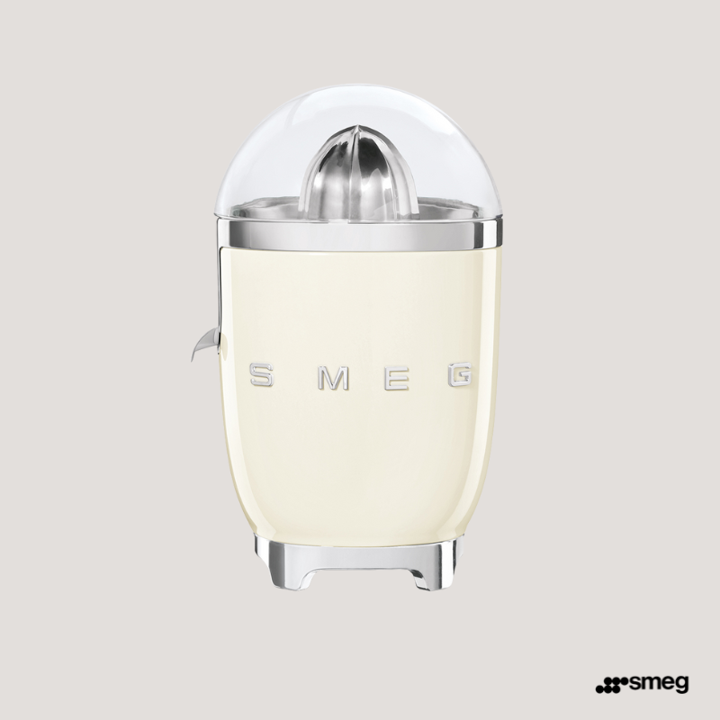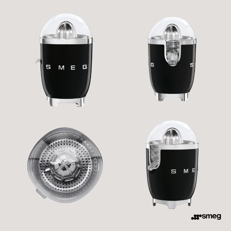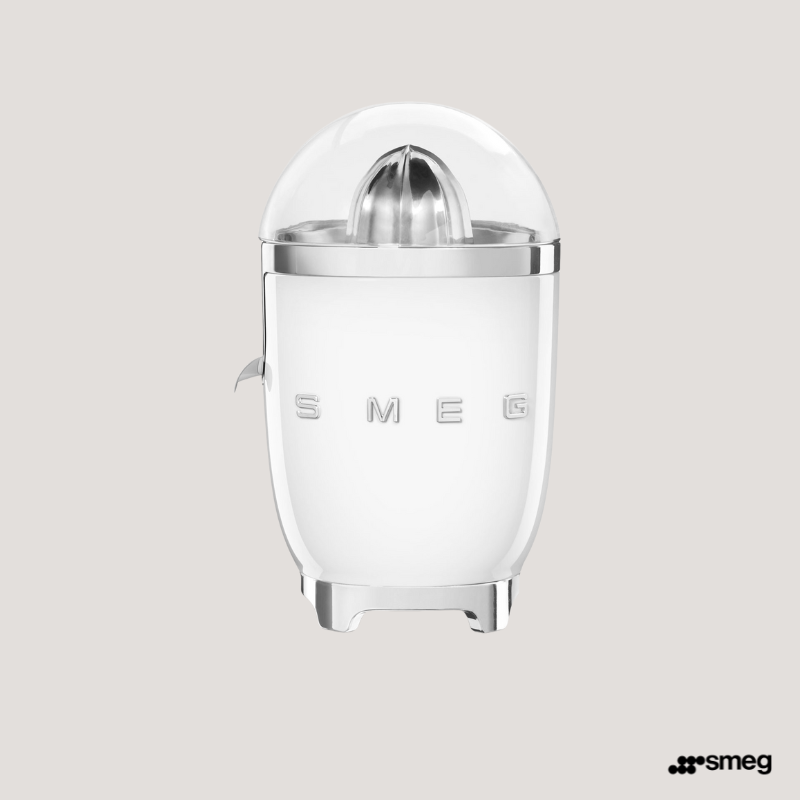 Start dagen med et glas friskpresset juice – hurtigt, nemt og elegant. Med Smegs citruspresser får du både ikonisk retrodesign og effektiv funktionalitet. Den automatiske start/stop-funktion gør det supernemt at presse appelsiner, citroner eller grapefrugter direkte i glasset. En smuk og praktisk citruspresser, der giver køkkenet et løft – og dig frisk juice på sekunder! Teknisk produktbeskrivelse: