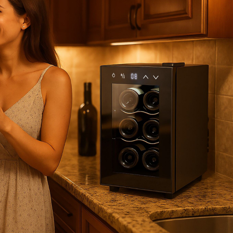 Kapacitet til 6 flasker: Ideel til små samlinger eller daglig vinopbevaring.