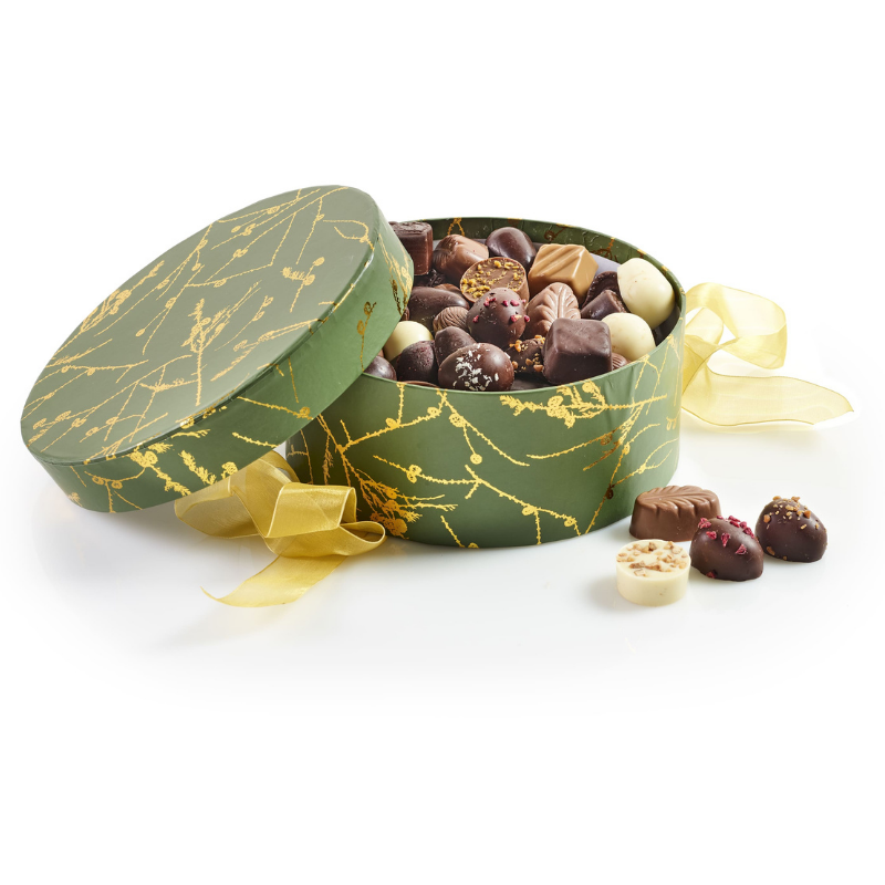 Hatteæske Guld Lærkegren, Stor – Luksuschokolade 1000 g.