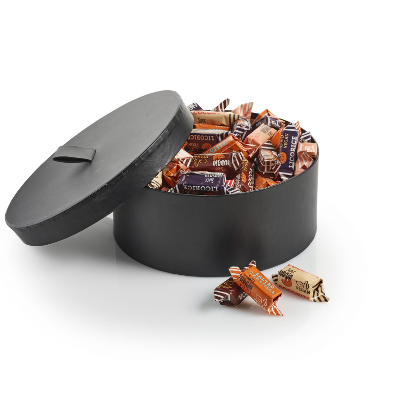 Hatteæske Sort m/Hank, Mega – Økologisk & Vegansk Fudge – Mix 900 g.