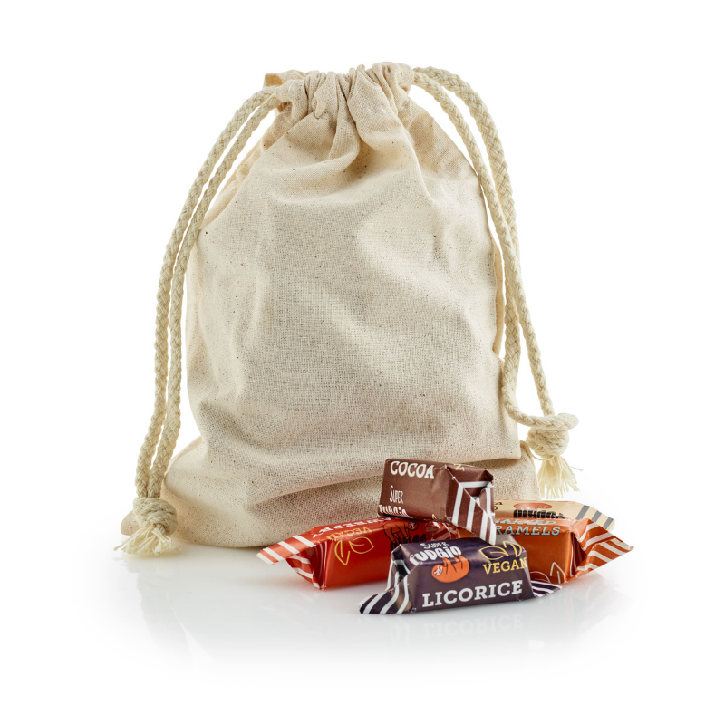Økologisk bomuldspose m/150 g. Økologisk fudge (individuelt indpakket); Mulighed for Privat Label